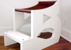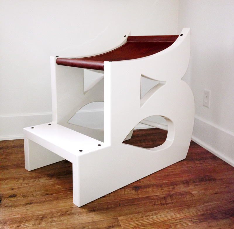 Materials: Medium density fiberboard base finished with multiple coats of catalyzed conversion varnish. Saddle leather seat.